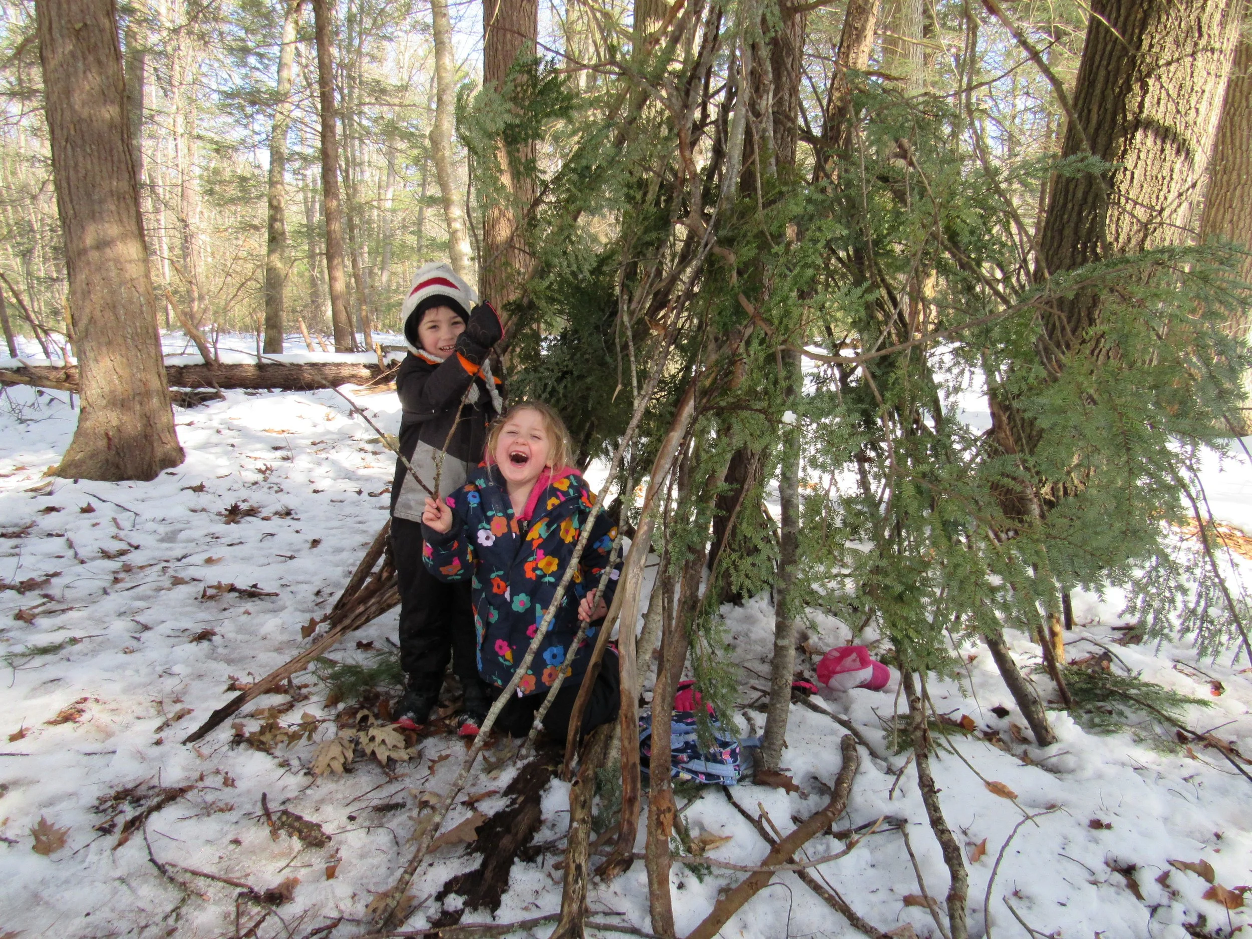We meet Monday-Friday, February 16th-20th, from 9am to 3pm, at the Brookwood Forest School on the Beverly/Manchester line. We are fortunate to have been invited to use Brookwood School’s new Forest School facility as our meeting space. The Forest School is a little haven surrounded by gigantic beech trees, with covered fire pits, a three walled shelter, and access to beautiful trails through hemlock and oak forests, and around swamps, brooks, and ponds.