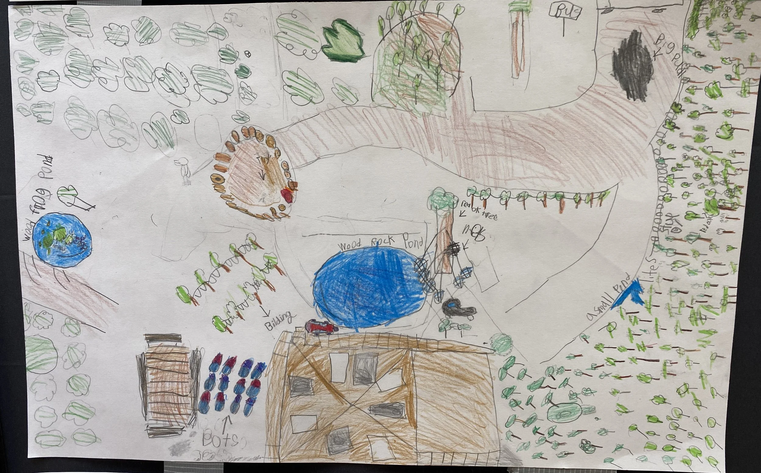 During two full morning visits to Camp Paradise, students compared life in different wetlands. They found, sketched, and identified creatures, and discussed how the wetlands themselves and the animals within them differ. They learned about migratory amphibians and the habitats they depend on. Students also explored upland habitats and documented the plants and animals inhabiting them and how they connect to wetlands life. Working in small groups, they mapped out the wetlands and the living things in and around them, in order to show how and why these particular wetlands are important.