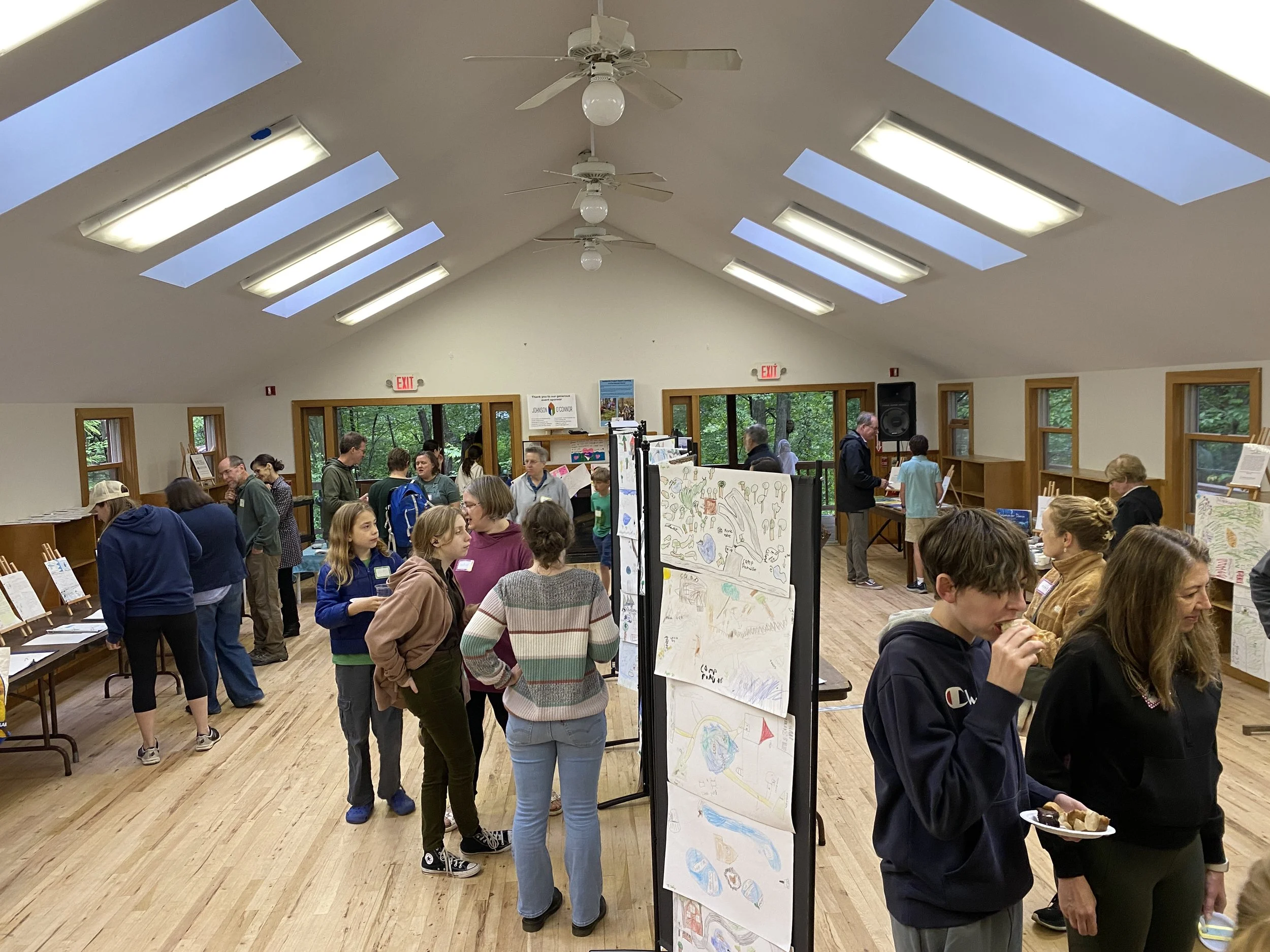 Student Work exhibits, live, drop-in presentations, wilderness skills demonstrations, live pond creatures