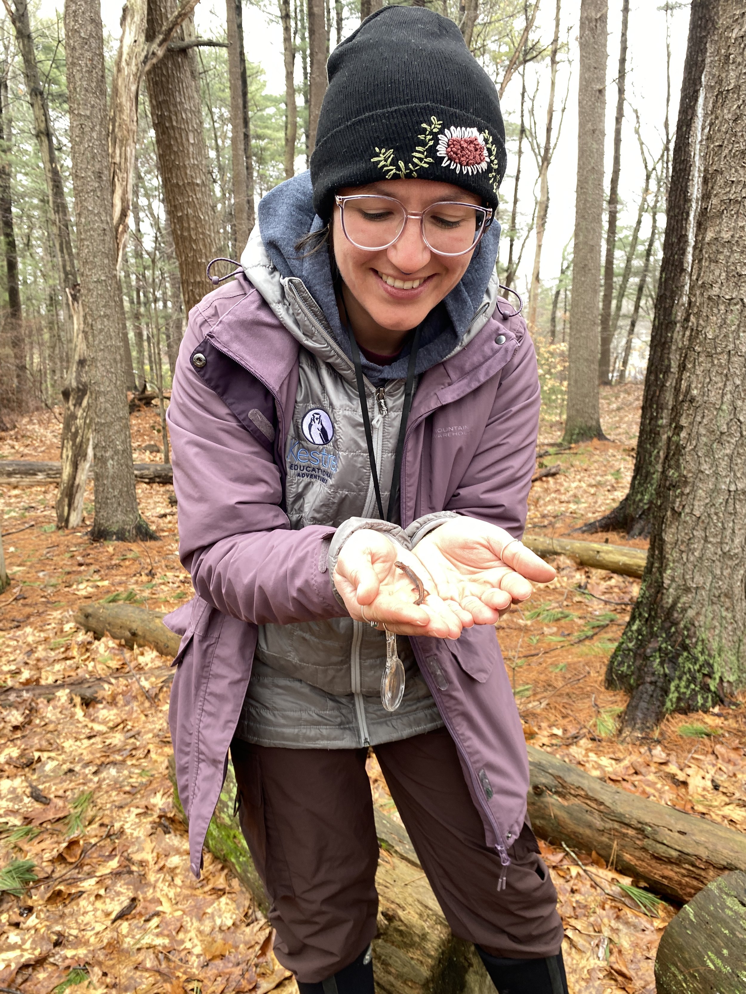 Kat grew up in Beverly, Massachusetts; a true local who attended North Beverly Elementary School and Essex Tech High School. She holds a bachelor's degree in Natural Resource Conservation with a concentration in Wildlife Conservation from the University of Massachusetts Amherst. There, her professors used experiential field learning to inspire Kat and her classmates to understand conservation work. She has gained passion for outreach and getting both kids and adults interested in their outdoor environment through hands-on learning. She believes very strongly that people can have an impact on wildlife even on the individual level, so facilitating positive interactions as much as possible is crucial. When she’s not teaching, she loves to be outdoors hiking, biking, kayaking, or even playing a sport with friends. She has an academic background in tracking, mapping, and deciphering population dynamics for different species.